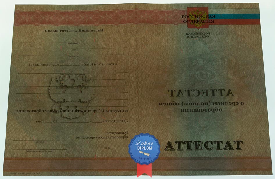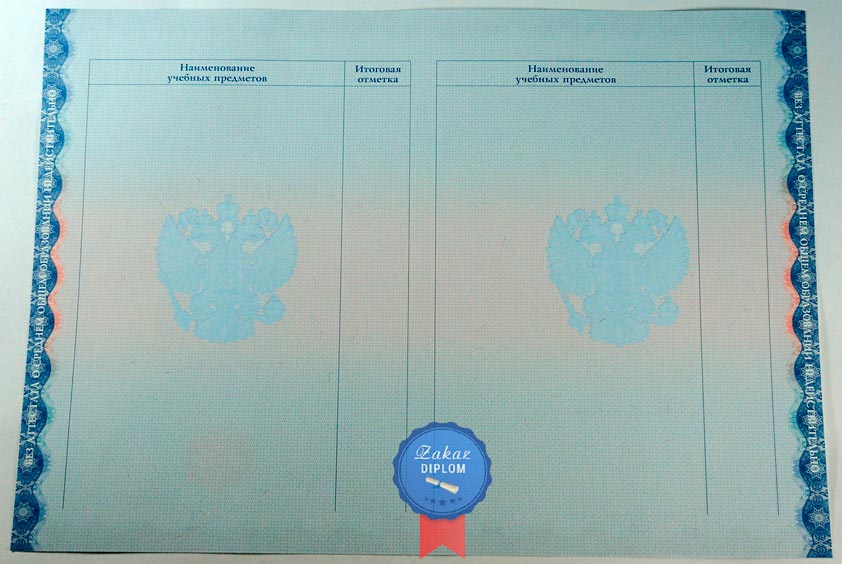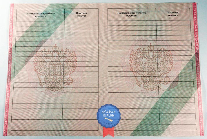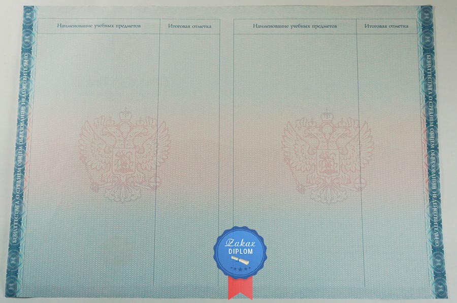 - документы о среднем образовании Российской Федерации. Они выдавались выпускникам 1994-2006 годов. Визуально на бланке можно отметить перемещение герба на разворот слева;